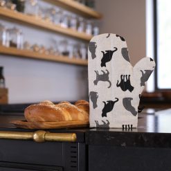 Linen Cats Oven Mitt (1 pc), Black & Grey Linen Protective Glove, Handmade Kitchen Mitt, Gift Idea for Cat Lover, Kitchen Accessory