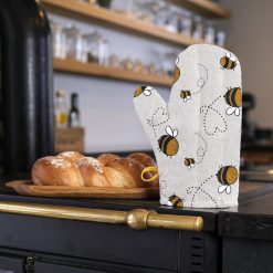 Linen Bees Oven Mitt (1 pc), Cute Kitchen Glove, Sustainable Honeycomb and Bees Oven Mitt, Protective Cooking Glove, Cute Kitchen Accessory