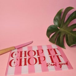 Pink Stripe ‘Chop It Real Good’ Glass Chopping Board | Shatterproof Space Saver Surface Protector | Kitchen Accessories Salt-n-Pepa Inspired