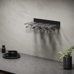 Wall-Mounted Wine Glass Holder for 8, Stylish Kitchen Organizer in Sleek Black Metal, White Kitchen Accessory, Gift For Her, Gift For Him