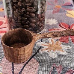 Hand Carved Walnut Coffee Scoop, Vintage Coffee Essentials, Flat Base Coffee Scoop, 5″ Wood Coffee Scoop, Exquisite Kitchen Accessories