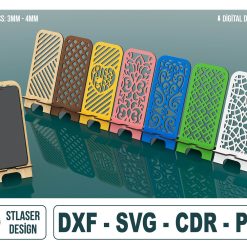 8 Design Laser Cut Phone Stand Vector Files, Phone Holder, AI-DXF-SVG Files For Wood Laser Cut