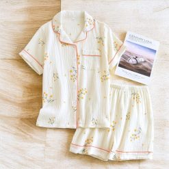 Cute Two Piece Pyjama Set For Women, Sleepwear With Short Sleeves Shirt, Summer Style Shorts, Floral Print Cotton Pyjama Set, Gift For Her