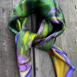 100% Silk Scarf Square Mulberry Silk Bandana Pure Silk Neckerchief Hair Scarf 21”x21” Green Purple Iris Silk Square Scarf Gift for Woman Mom