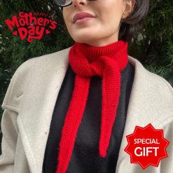 Red Sophie Neck Scarf –Spring Viral Minimalist Knit Scarf, Cozy Lightweight Wool Wrap, French Girl Aesthetic Gift, Mother’s Day Gift