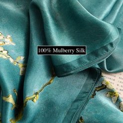 100% Mulberry Silk Scarf – Large Silk Scarf – Van Gogh Almond Blossom Print – 180X65cm