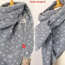 XXL muslin cloth cotton cloth WOMEN’S SCARF ladies scarf triangular scarf grey branches muslin 100% cotton niciart design